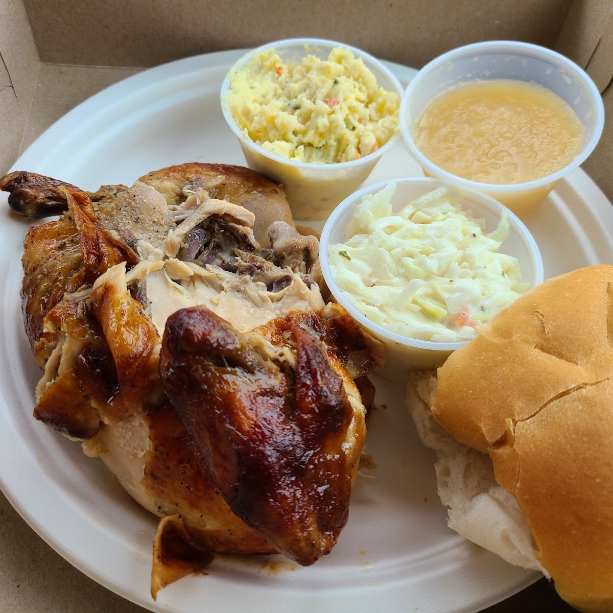 Really good rotisserie chicken. Potato salad and cole slaw were also good. Deviled eggs are excellent and a great quick lunch option.
